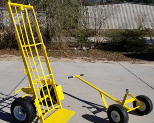 The Jolly Dolly is proudly hand-made made in the USA by experienced fabricators using quality materials. It has a quarter-inch-thick load plate, 14 gauge frame rails, and cross bars and structural components made from schedule 40 steel pipe and 3/16” steel flat bar. The dolly is mig-welded in a precision jig to insure consistency and accuracy. It is then sand blasted and powder coated to provide a durable, long-lasting finish that resists scratches and corrosion.