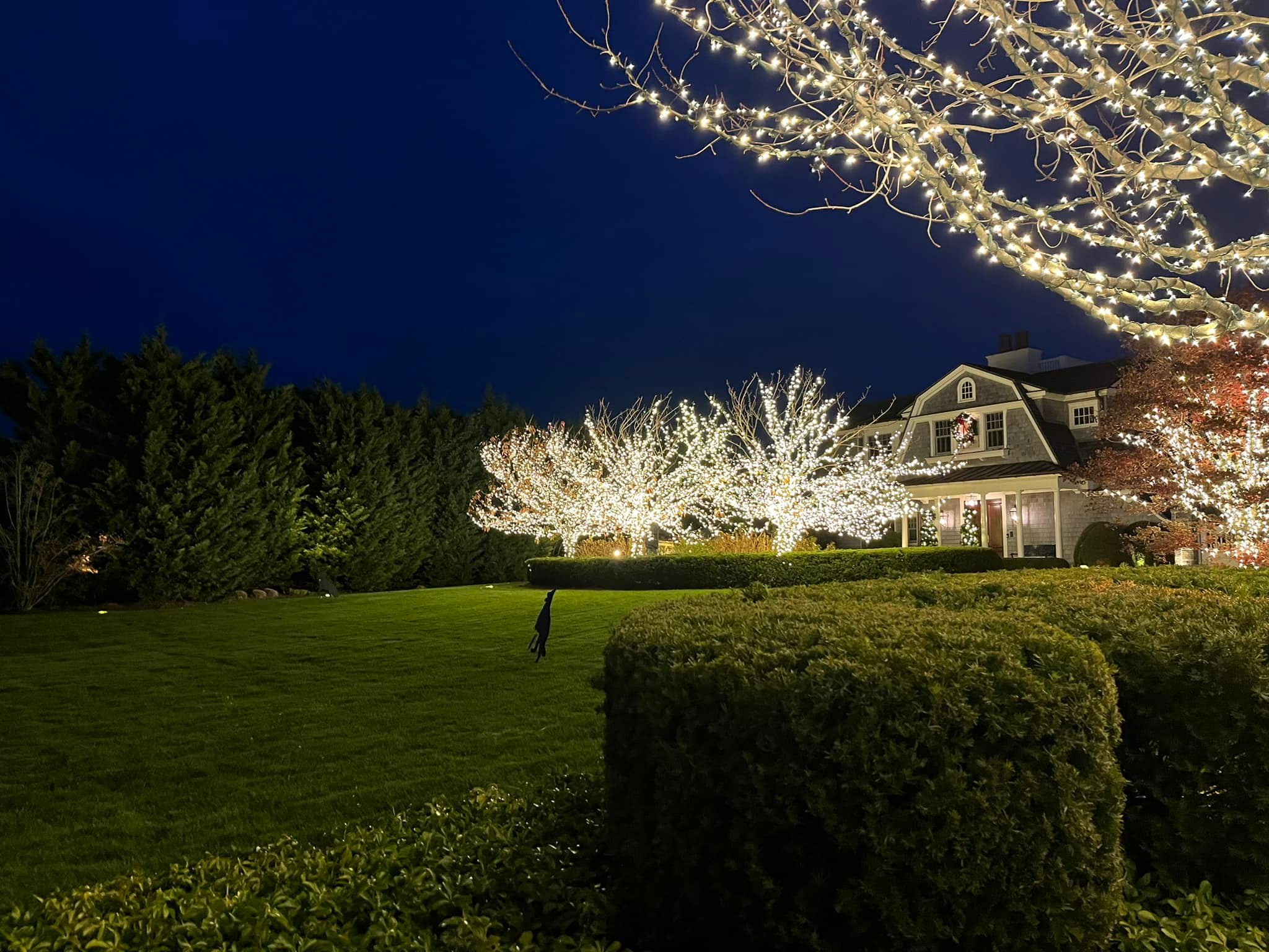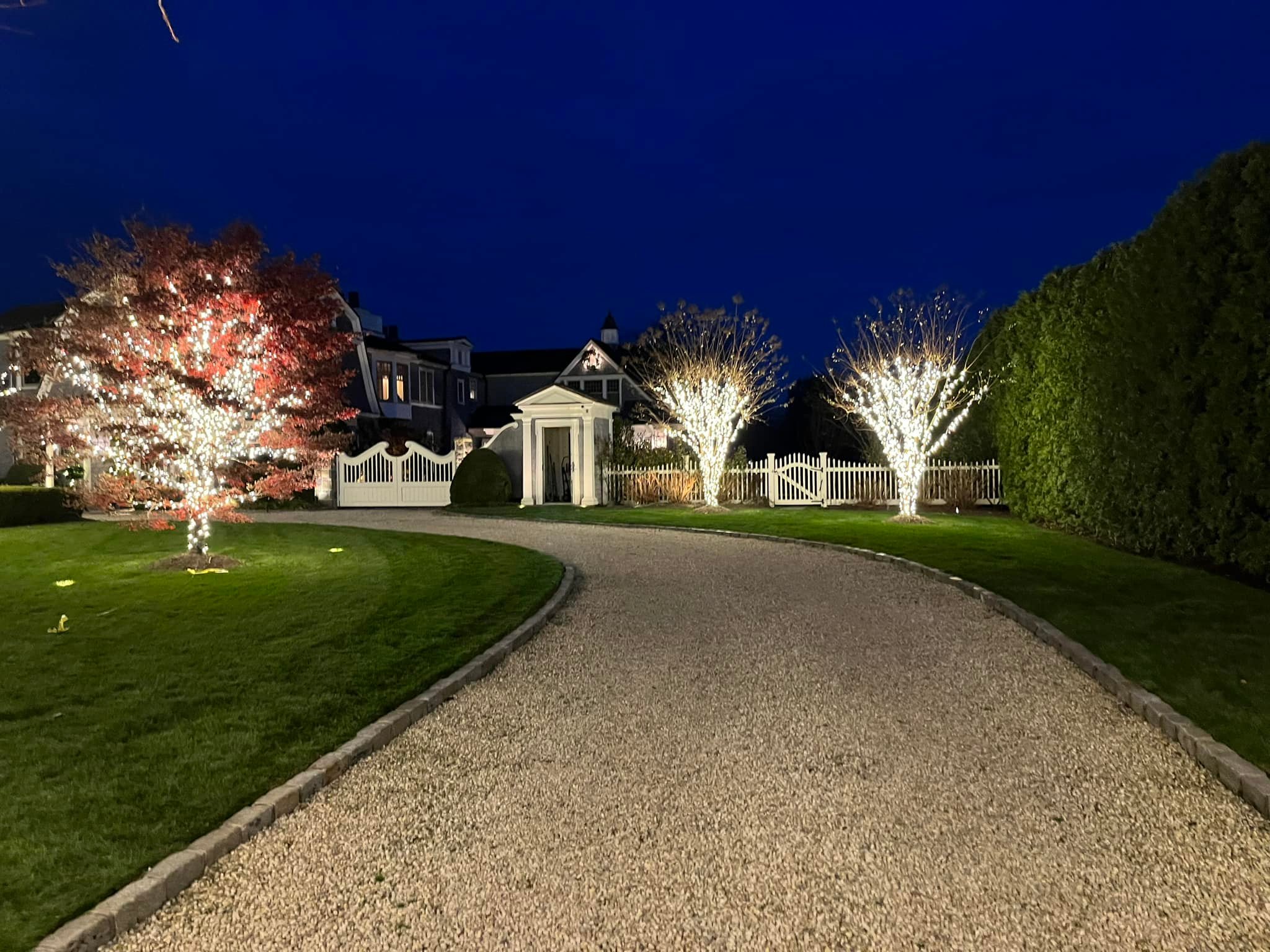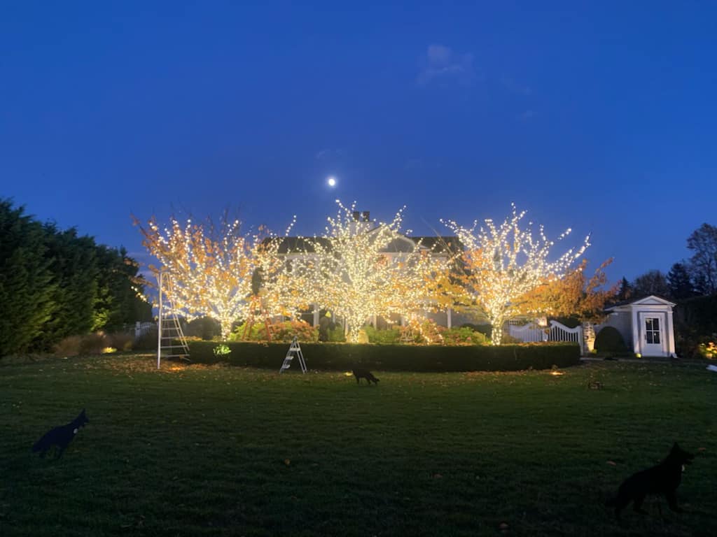 Absolutely! We have professional equipment to safely install tree wrapping lights on trees of any height, common in Long Island’s mature landscapes.